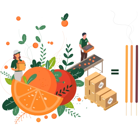 La idea de crear un incienso a base de frutas nace en los valles de la Patagonia, Argentina. Más de 100 toneladas anuales de pulpa de fruta son descartadas de la fabricación de jugos y derivados, de la cual José de Biot reutiliza y transforma de manera natural en una materia prima sustentable (biomasa).